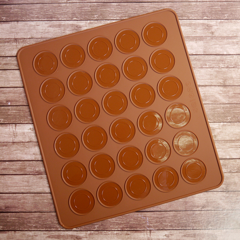 Коврик силиконовый для выпекания с разметкой поможет сделать одинаковые кружочки и без труда отделить готовые половинки будущего пирожного от поверхности коврика.