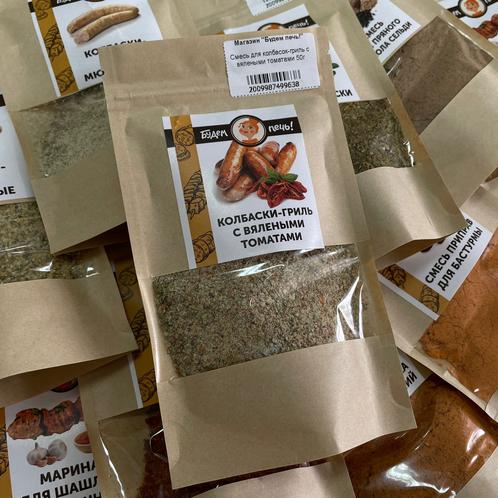 Смесь приправ для Колбасок-гриль с вялеными томатами - подходит для купат, пряных колбасок-гриль из любого вида мяса. Колбаски для жарки из мяса курицы и других птиц в сочетании с этой смесью приобретут нежный полный вкус с оттенком томата.
